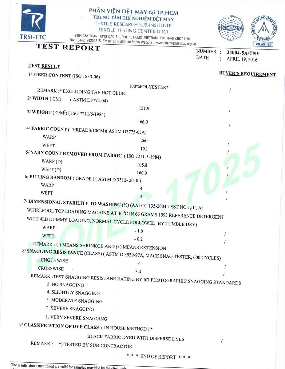 - Các loại vải lót (100%Polyester, TC 65/35, TC 80/20, 100%Cotton, PE Twill, taffeta...) trong ngành may mặc với đối tác là nhà máy sản xuất trực tiếp và có truyền thống trên dưới 30 năm tại Trung Quốc.